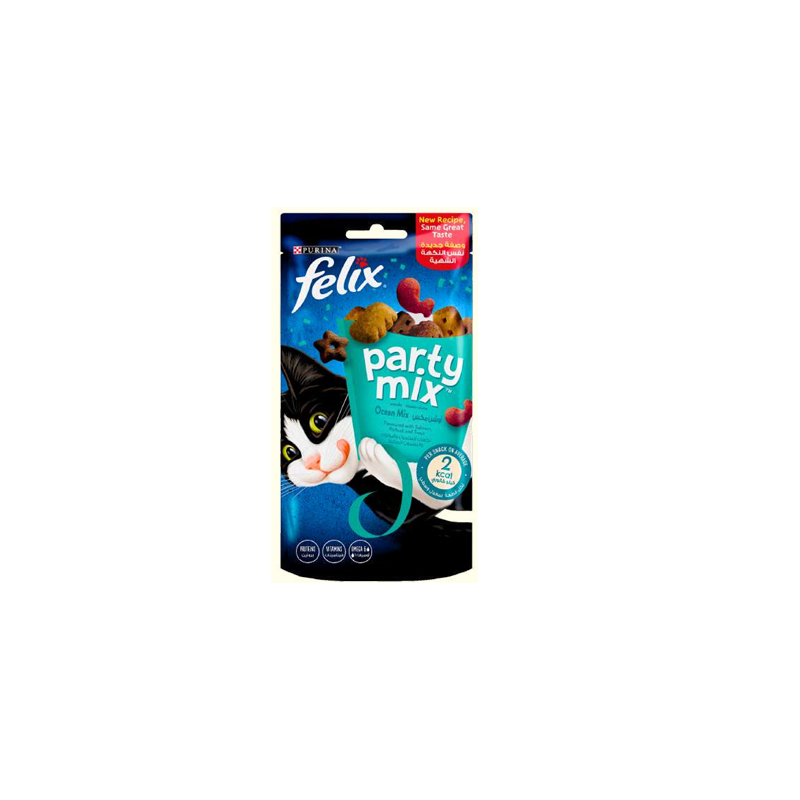 les friandises FELIX Party Mix est un irrésistible assortiment coloré de friandises aux arômes alléchants, aux saveurs délicieuses et aux formes surprenantes. Et ce n’est pas tout ! FELIX Party Mix contient des protéines, des vitamines et des acides gras oméga 6 pour aider votre chat à vivre une vie saine et heureuse.
